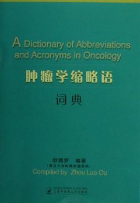 上海中医药大学出版社,2006,—571, 页ISBN 9787810109147. 本词典收词约5000条,既包括在肿瘤学界广为人知的经典缩写,也着力汇集了反映肿瘤学进展的最新缩写。就其所收录的范围而言,以首字母组合综窝囊废事业主,尤其侧重于3个字母及3个字母以上的首字母组合缩写词如CEA(癌胚抗原)、UICD(国际抗癌联盟)等。鉴于2个字母、单字母缩略语的特异性很差,因而只选取少数确实有用的词条。为方便读者用更有亲和力的汉语进行反向聚类检索及浏览,本词典特意编排了中文索引部分。鉴于杂志名称的缩写比较特殊,因此以4个附录的形式予以单独编排,可以按英文字母顺序、汉语拼音排序、肿瘤学类、生物医学类、影响因子等任意检索,创刊年份、刊频、出版地、可移植文档格式全文出处等基本信息也尽可信拈来。此外,本词典中还提取了300条常用缩写及100条必读缩写,这是为时间和精力有限的青年医务人员及学生准备的快餐。