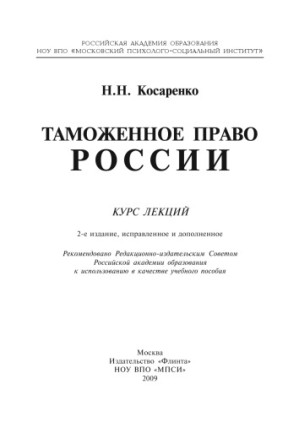 Таможенное право России: курс лекций: учеб.-метод. пособие: [для аспирантов, студентов и специалистов в сфере тамож. дела]