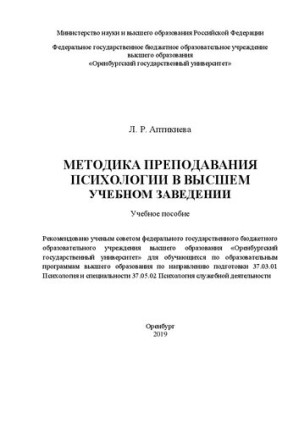 Методика преподавания психологии в высшем учебном заведении: Учебное пособие для обучающихся по образовательным программам высшего образования по направлению подготовки 37.03.01 Психология и специальности 37.05.02 Психология служебной деятельности