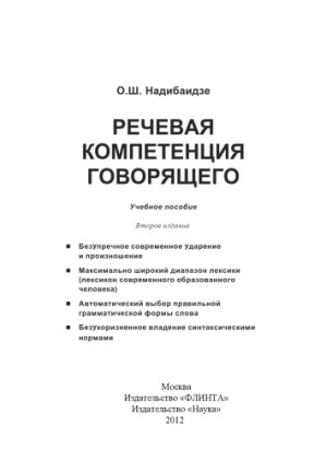 Речевая компетенция говорящего: безупречное современное ударение и произношение, максимально широкий диапазон лексики (лексикон современного образованного человека), автоматический выбор правильной грамматической формы слова, безукоризненное владение синтаксическими нормами: учебное пособие