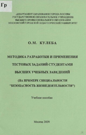 Методика разработки и применения тестовых заданий студентами высших учебных заведений (на примере специальности "Безопасность жизнедеятельности") : учебное пособие
