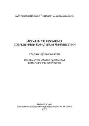 Актуальные проблемы современной парадигмы лингвистики : сборник научных статей : посвящается юбилею профессора Веры Ивановны Заботкиной Коллектив авторов ЭБС Лань, Калининград, Russia, 2011