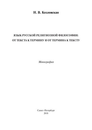 Язык русской религиозной философии : от текста к термину и от термина к тексту : монография Н. В. Козловская ; Институт лингвистических исследований Российской академии наук Свое издательство, Sankt-Peterburg, Russia, 2018