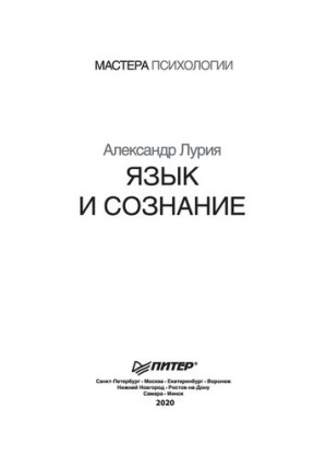Язык и сознание: 16+ Лурия, Александр Романович Питер, Мастера психологии, Санкт-Петербург [и др.], Russia, 2020