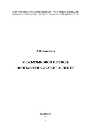 Межъязыковой перевод: лингвофилософские аспекты А. В. Копылов; Министерство образования и науки Российской Федерации, Мурманский государственный гуманитарный университет Мурманский гос. гуманитарный ун-т, Мурманск, Russia, 2013