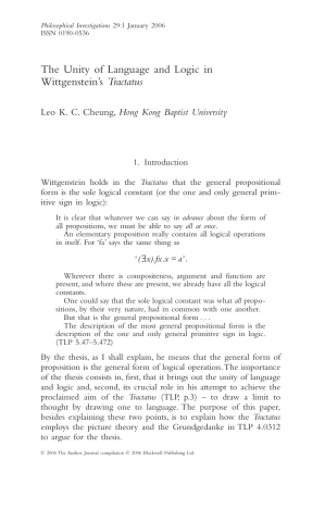 lgli/C\Cheung, Leo\Cheung, Leo - The Unity of Language and Logic in Wittgenstein's Tractatus.pdf