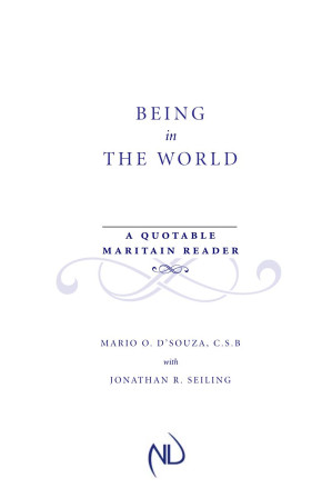 In *Being in the World: A Quotable Maritain Reader* , Mario O. D’Souza, C.S.B., has selected seven hundred and fifty of the most salient quotations found in the English translations of fifty-four works by Jacques Maritain. Organized into forty thematic chapters, ordered alphabetically, the book serves as an overview of the areas that Maritain's writings addressed. By referring to entries in *Being in the World* , readers can quickly locate key passages in Maritain’s writing on a given topic and then turn elsewhere to the full texts for more in-depth study. Complete with a detailed index of key terms, the *Reader* will be an essential reference tool for the study of Maritain in English.